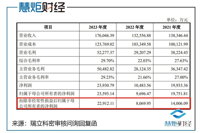 那么,2022年和2023年业绩大幅波动的瑞立科密,是否符合主板"经营业绩稳定"的要求呢?