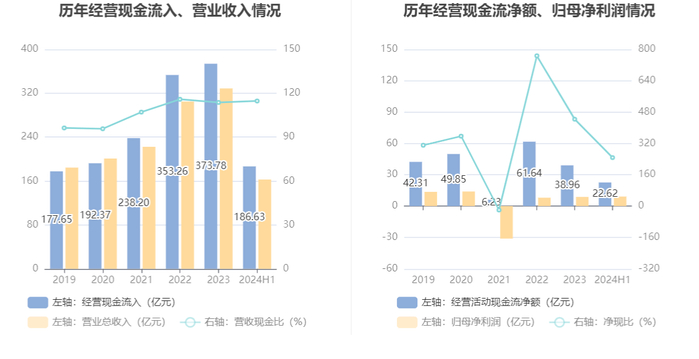 2024年上半年,公司营业收入现金比为114.71%,净现比为247.63%。