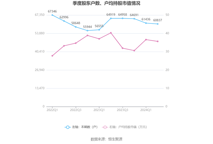 筹码集中度方面,截至2024年上半年末,公司股东总户数为6.08万户,较一季度末下降了599户,降幅0.97%;户均持股市值由一季度末的36.61万元下降至35.65万元,降幅为2.62%。