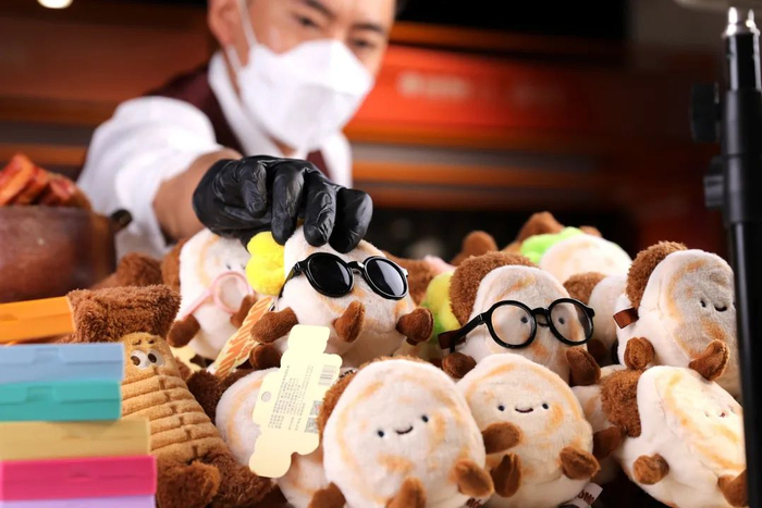 现场选好毛茸茸的麻辣烫“菜品”,拿好“号码牌”等候,会有工作人员为消费者现场“烹饪”。西安“绒馍馍”也是现场“选料”,客制化“制作”,仪式感满满,陪消费者一起“过家家”,主打一个“够沉浸”。