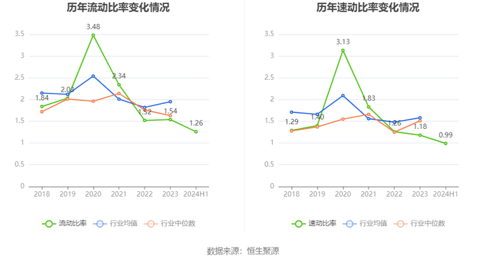 2024年上半年,公司流动比率为1.26,速动比率为0.99。