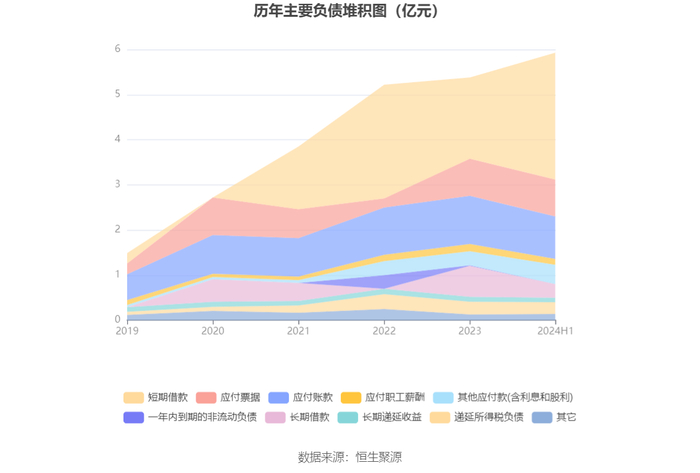 负债重大变化方面,截至2024年上半年末,公司短期借款较上年末增加55.69%,占公司总资产比重上升5.84个百分点,主要系报告内增加短期借款;长期借款较上年末减少56.53%,占公司总资产比重下降2.60个百分点,主要系报告期内偿还借款;其他应付款(含利息和股利)较上年末增加40.67%,占公司总资产比重上升0.71个百分点;应付账款较上年末减少11.70%,占公司总资产比重下降1.03个百分点。