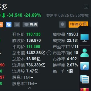 拼多多(PDD.US)盘初大幅下跌超24%,创下2022年10月以来最大跌幅。该公司第二季度营收达到971亿元,同比增长86%。预估999.9亿元人民币,不及预期。调整后营运利润349.87亿元,同比增长139%;调整后归属于普通股东净利润344.32亿元,同比增长125%。董事长陈磊表示,受外部环境剧烈变化影响,跨境业务不确定性增多,收入放缓趋势明显。