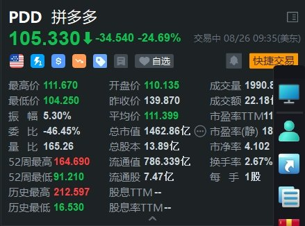拼多多盘初大跌超24% Q2营收971亿元不及预期