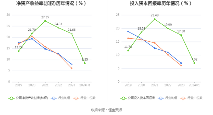 数据显示,2024年上半年公司加权平均净资产收益率为8.35%,较上年同期下降1.60个百分点;公司2024年上半年投入资本回报率为7.02%,较上年同期下降1.17个百分点。