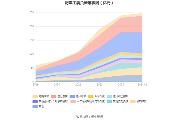 负债重大变化方面,截至2024年上半年末,公司应付票据较上年末增加16.78%,占公司总资产比重上升1.30个百分点;其他流动负债较上年末减少34.88%,占公司总资产比重下降1.83个百分点;长期借款较上年末增加20.88%,占公司总资产比重上升0.79个百分点;应付账款较上年末增加6.09%,占公司总资产比重上升0.32个百分点。