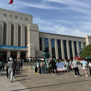 7月某一天,澎湃新闻记者在甘肃省博物馆门口看到,工作日的上午,博物馆入口的广场上站满了各个年龄层的游客。其中有不少研学游、夏令营等学生团体在门前拍照,在团队入口处排队。