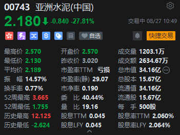 亚洲水泥暴跌近30%,私有化计划告吹