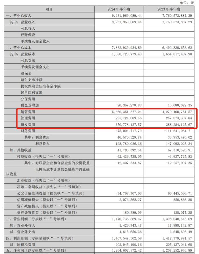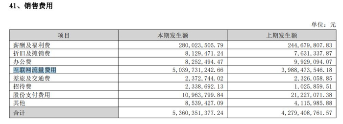 销售费用激增,半年就花掉了 53.6 亿,比去年多了近 11 个亿,主要是买量;