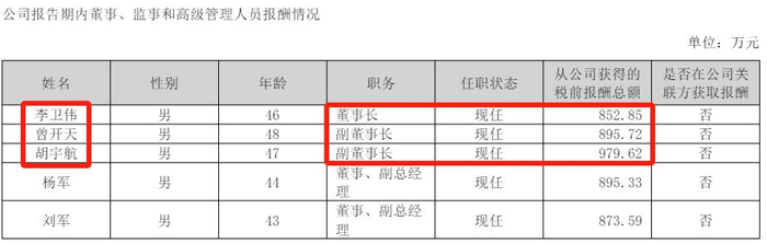 另外 2 位创始人兼副董事长曾开天、胡宇航,也分别分到了 1.04 亿、8467 万。