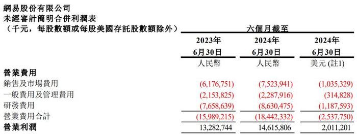 上半年,网易的销售及市场费用同样也大增,达到了 75 亿。