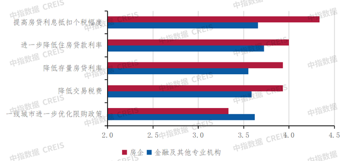 (4)调查对象对2024下半年政策期待度较高,尤其是需求端政策。在需求端,调查对象最期待提高房贷利息抵扣个税幅度;在供给端,房企最期待全面取消限价、放开容积率限制等,金融机构则更关注加大存量住房收购力度政策。