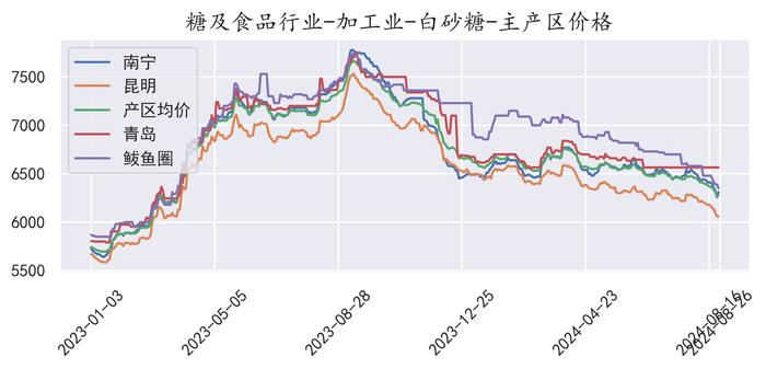 中国白砂糖主产区现货价格监测(2024-08-26)