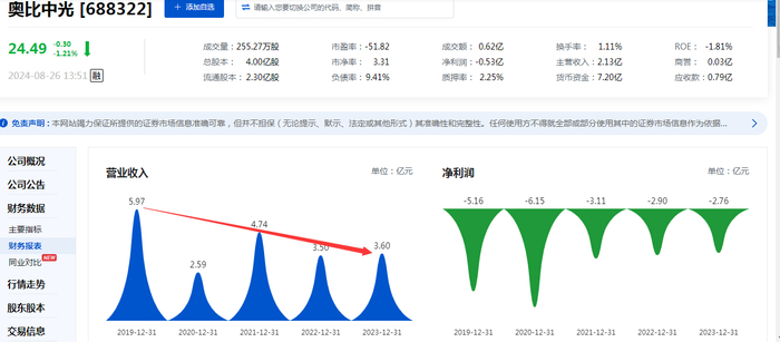 尽管今年上半年亏损同比大幅缩减,然而,未盈利是不争的事实。并且,拉长时间线来看,于2022年度上市的奥比中光,其最近五年净亏损已高达20亿元。公开数据显示,2019年-2023年,奥比中光录得净利润分别为:-5.16亿元、-6.15亿元、-3.11亿元、-2.90亿元、-2.76亿元。