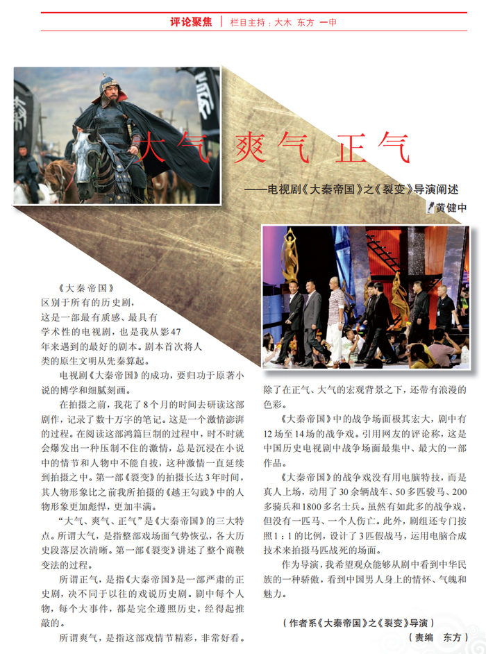 附:《中国电视》 2011年第9期《大气 爽气 正气——电视剧<大秦帝国>之<裂变>导演阐述》(作者:黄健中)