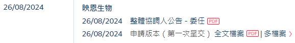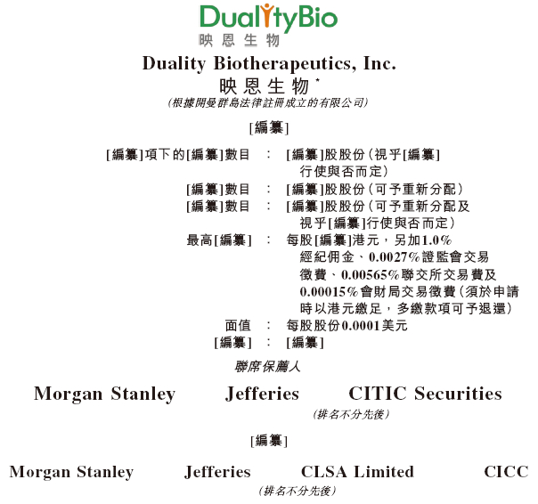 2024年8月26日,总部位于上海的映恩生物 Duality Biotherapeutics, Inc.(简称"映恩生物”)在港交所递交招股书,拟在香港IPO上市。