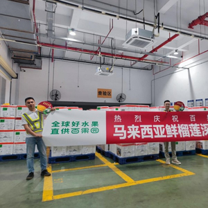 首批马来西亚鲜食榴莲,深圳百果园实业(集团)股份有限公司(简称“百果园”)一家采购量占比达23%,涵盖D24苏丹王、D197猫山王、D200黑刺等十余个品种。据介绍,百果园与马来西亚优质榴莲供应链合作,深入马来西亚猫山王榴莲核心产地进行直采,还将“优中选优”,打造“大芭”品牌的高端榴莲系列;运抵深圳的约20吨马来西亚鲜食榴莲,由深农投旗下的深圳海吉星进出口公司采购,已在海关开放准入的第一时间,通过产地直采专运交付客户。