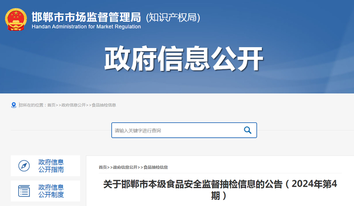 邯郸市市场监督管理局关于邯郸市本级食品安全监督抽检信息的公告(2024年第4期)