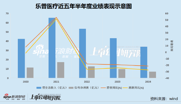 近日,乐普医疗披露2024年半年度报告。公告显示,公司上半年实现营业收入约为33.84亿元,同比下降21.33%;归母净利润约为6.97亿元,同比下降27.48%;扣非净利润为6.47亿元,同比下降28.48%。