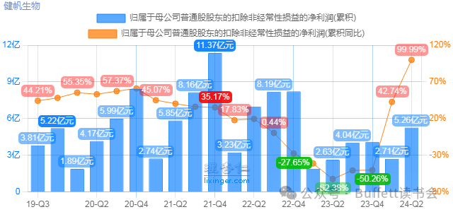 2024年上半年,公司净利润5.53亿,同比增长99%,扣非净利润有5.26亿,同比增长近100%。