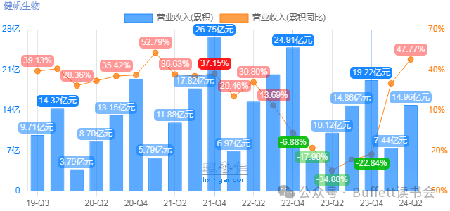 健帆生物日前发布2024年中报。24H1公司实现收入14.96亿元,同比增长47.77%;扣非归母净利润5.26亿元,同比增长99.99%。