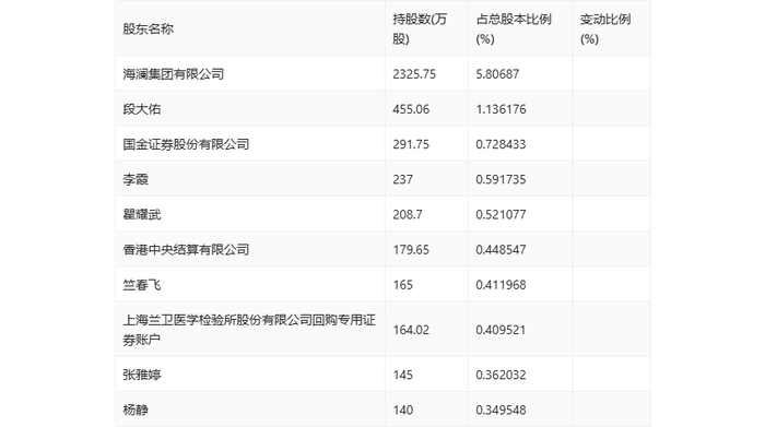 半年报显示,2024年上半年末公司十大流通股东中,新进股东为香港中央结算有限公司、上海兰卫医学检验所股份有限公司回购专用证券账户,取代了一季度末的杨利帆、孙林洁。在具体持股比例上,瞿耀武持股有所上升,国金证券股份有限公司、李霞持股有所下降。
