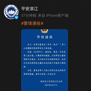 8月27日晚间,杭州市公安局滨江区分局通过“平安滨江”发布警情通报:董某某(网名:铁头)等人涉嫌敲诈勒索罪已被采取刑事强制措施。