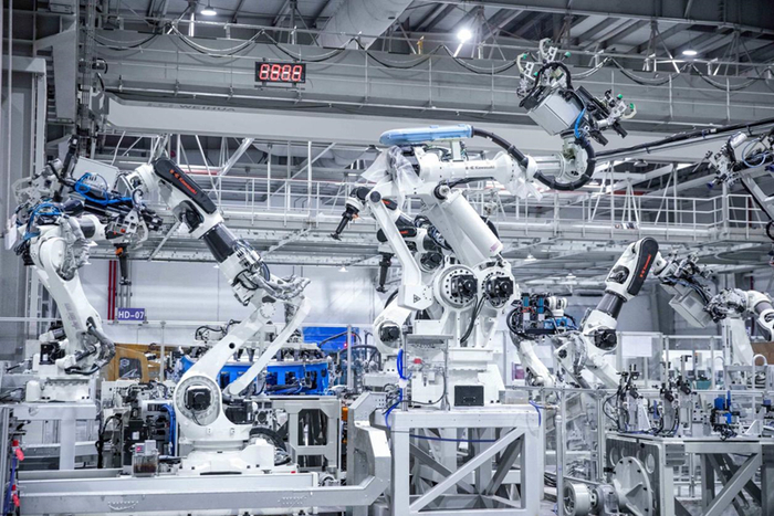 此外,长安汽车数智工厂与华为深化合作,共同打造了全球领先的智慧工厂“样板间”。这一工厂由长安汽车与华为联合定制,具备业内更广泛的无线连接范围(连接了超过12000台设备),更高的连接速率(5G+Wifi6+IP+光纤,达到每秒100万个数据点位)。工厂每年产生超过20TB的制造数据,形成庞大的数据库,具备自我学习能力,可自主优化能耗并进行生产决策。