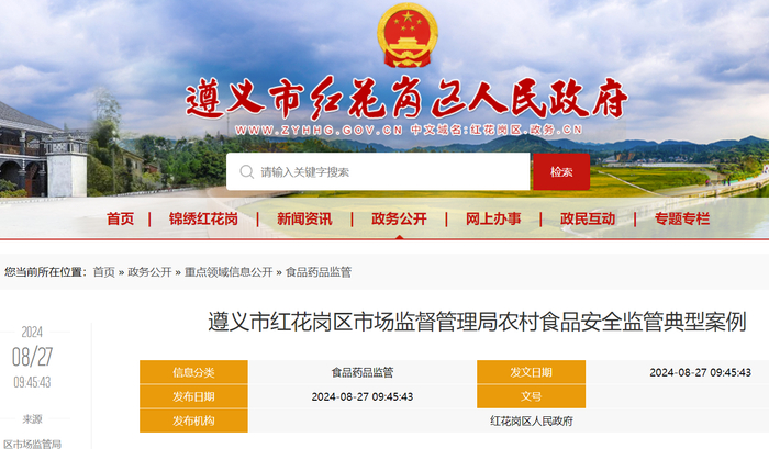贵州省遵义市红花岗区市场监督管理局农村食品安全监管典型案例