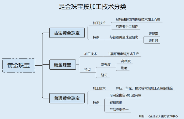 据2024年6月11日招股书,足金珠宝按加工技术可分为古法黄金珠宝、硬金珠宝及普通黄金珠宝。