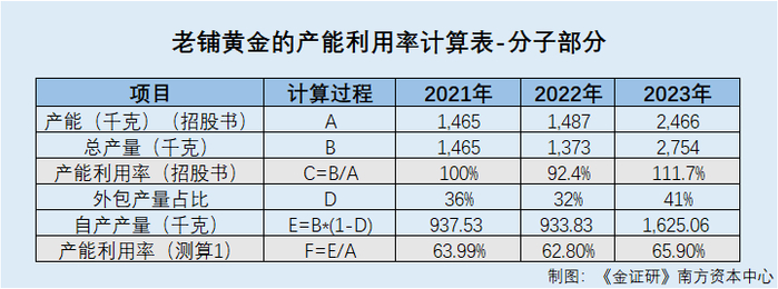 除此之外,老铺黄金所披露的产能利用率现疑云。