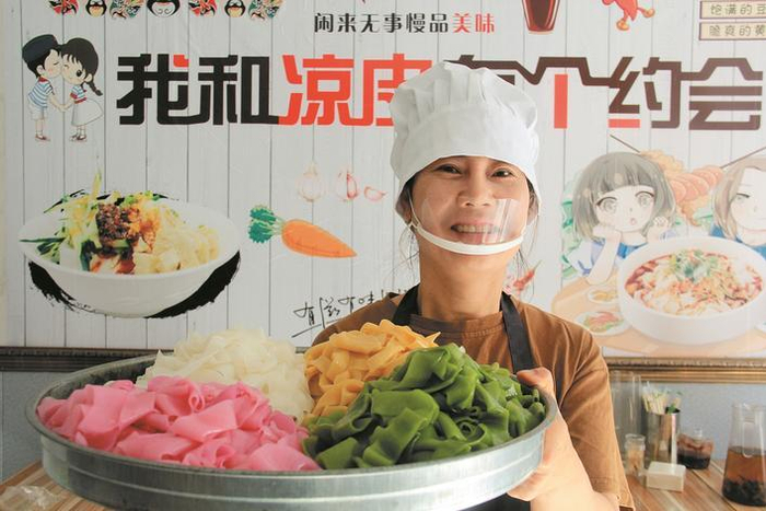 看似简单的凉皮,要做到味道好、口感丰富,其实并不简单。每家凉皮店都有自己的“独家秘方”,却也有不约而同的选择:要使用本地出产的面粉,凉皮口感才更筋道;干辣椒要由店家自己收购晾晒研磨成粉,这样炸制出来的辣椒油品质才更好;不放香菜和黄瓜,只保留韭菜最原始的浓郁味道……