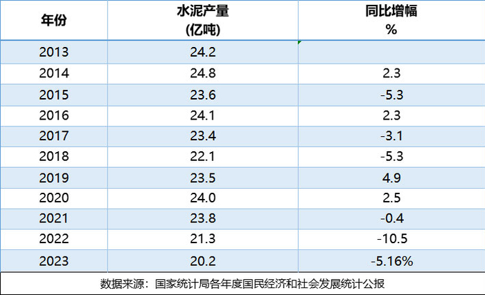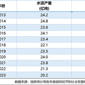 产量方面,2021年全国规模以上企业累计水泥产量约23.8亿吨,2022年降至21.3亿吨,2023年降至20.2亿吨,较上年同期下降4.5%,较2014年峰值减少19%;2024年上半年水泥需求延续前两年的下滑走势,2024年上半年全国水泥产量8.5亿吨,同比下降10%。