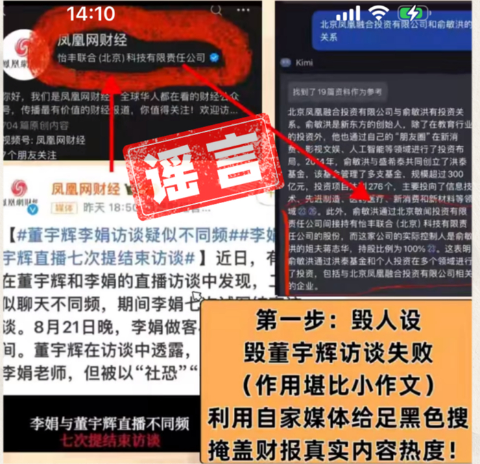 对于该谣言,我司已经取证并将向有关部门举报。同时,自从与辉同行独立以来,东方甄选和俞敏洪老师,从来没有参与任何针对董宇辉老师的评价和攻击!也希望大家向我们提供这一类谣言线索,我们会及时处理。