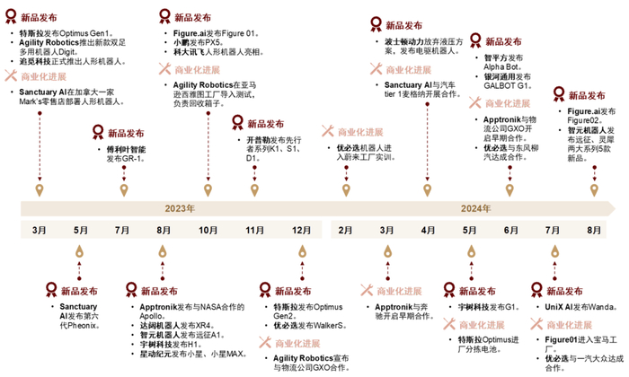 注:截至2024年8月18日; 资料来源:各公司官网,人形机器人发布,机器人大讲堂,创业邦,中金公司研究部