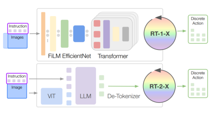 谷歌RT系列模型:2023年10月发布的RT-X由RT-1-X和RT-2-X构成。RT-X-1的平均性能较RT-1提升50%、RT-2-X的泛化能力是RT-2的约3倍,能够成功执行相对位置的移动操作任务以及数据集中没有的动作,泛用性和灵活性得到进一步的提升。