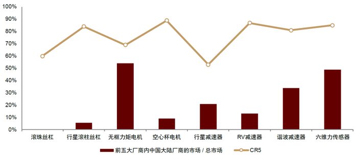 图表:中国人形机器人零部件厂商竞争格局情况(2023年)