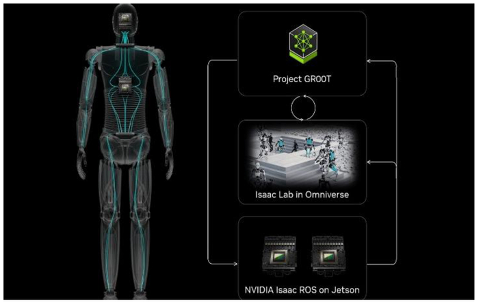英伟达Project GR00T:2024年3月,英伟达发布人形机器人通用基础模型Project GR00T。Project GR00T依托边缘计算GPU芯片Jetson Thor以及仿真模拟平台Omniverse Isaac Sim,能够理解自然语言并通过观察来优化动作控制,目前已与1X Technologies、波士顿动力、Figure.ai、宇树科技、小鹏等国内外具身智能厂商展开合作。