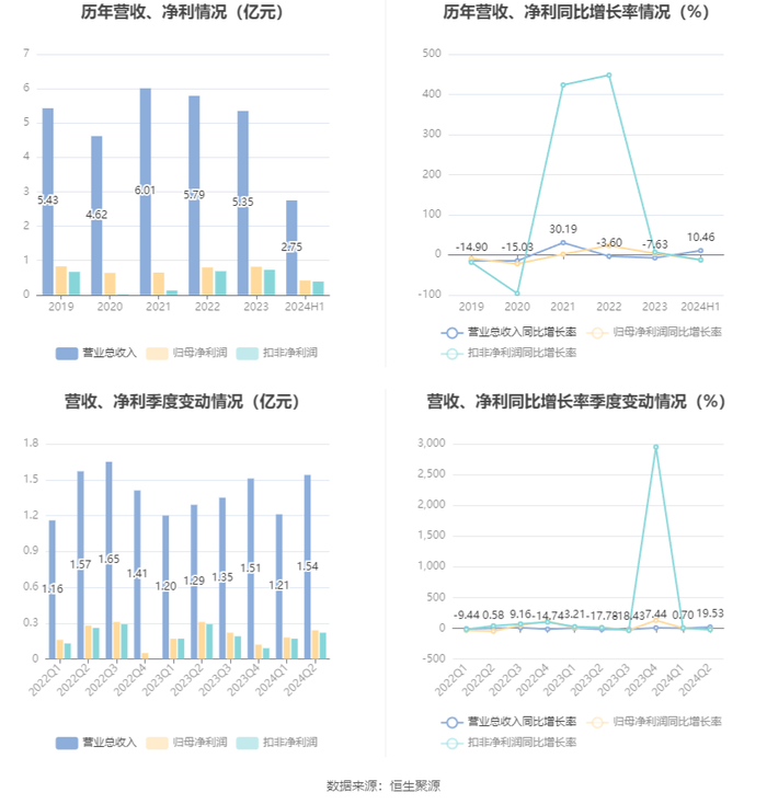 根据半年报,公司第二季度实现营业总收入1.54亿元,同比增长19.54%,环比增长27.53%;归母净利润2448.68万元,同比下降21.37%,环比增长36.97%;扣非净利润2234.91万元,同比下降22.24%,环比增长30.43%。