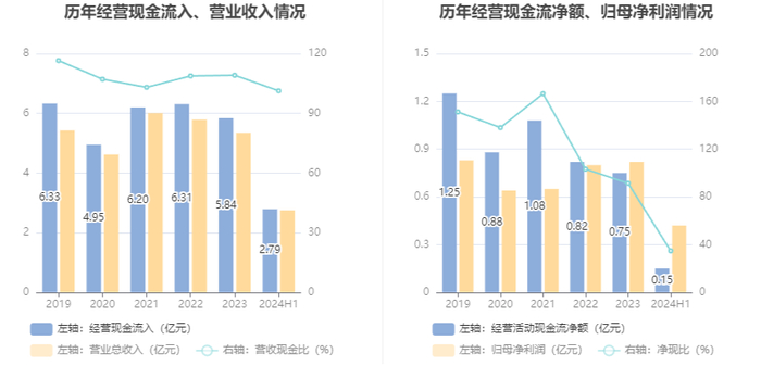2024年上半年,公司营业收入现金比为101.33%,净现比为34.76%。
