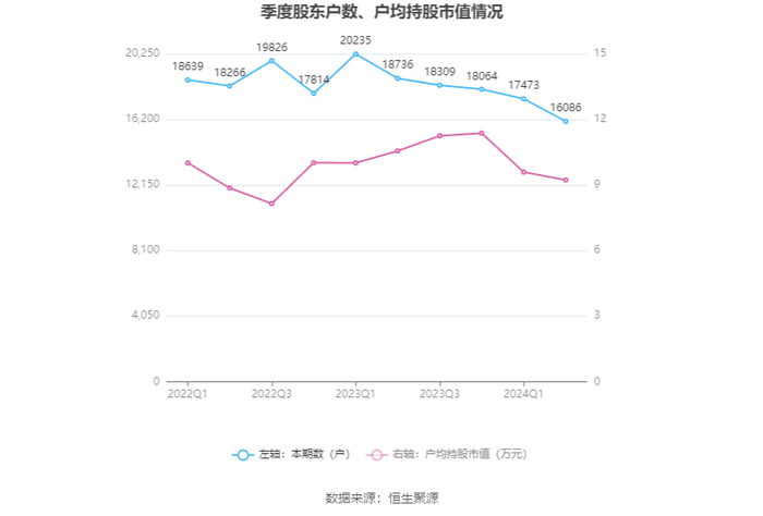 筹码集中度方面,截至2024年上半年末,公司股东总户数为1.61万户,较一季度末下降了1387户,降幅7.94%;户均持股市值由一季度末的9.59万元下降至9.23万元,降幅为3.75%。