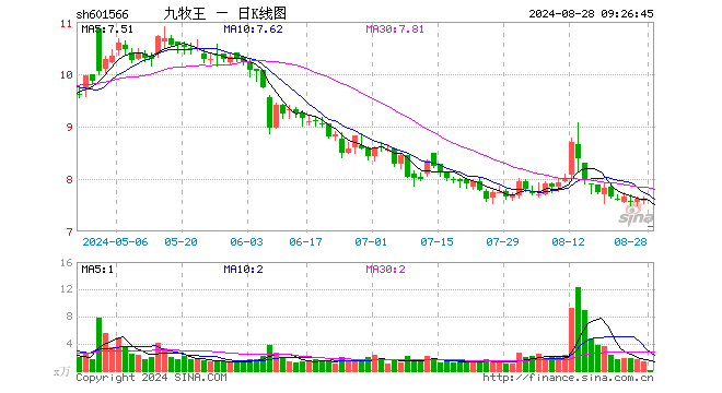 8月28日,九牧王开盘跌6.96%,报7.09元。