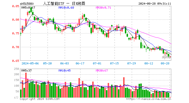 8月28日,人工智能ETF(515980)开盘跌0.30%,报0.663元。人工智能ETF(515980)重仓股方面,中际旭创开盘跌0.22%,科大讯飞跌0.12%,新易盛跌0.57%,中科曙光涨0.00%,金山办公跌0.28%,韦尔股份跌0.32%,海康威视跌0.23%,石头科技跌0.74%,紫光股份跌0.16%,澜起科技跌0.06%。