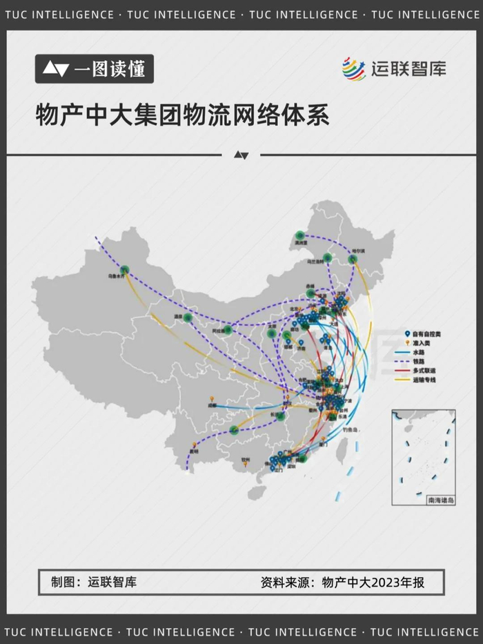 目前,物产中大物流在华北、华东和华南等布局网络结点数180个,其中大宗自营基地68个,带码头仓19个、泊位53个,铁路专用线14条,年综合物流服务量达6928万吨,2023年末第三方库存231万吨,同比增长56%;网络货运平台拥有司机数4.8万余名、车辆2.7万余辆。