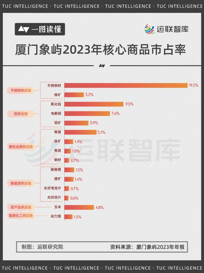 其目前主要经营金属矿产、农产品、能源化工、新能源等大宗商品,涵盖“黑色金属、铝、不锈钢、新能源、煤炭、油品、谷物原粮”七大核心品类。结合行业周期变化,象屿通过产业链上下游延伸及模式横向复制,不断丰富和优化商品组合,在重要细分品类上精耕细作,形成规模优势,锻造大宗商品一揽子组合供应能力。