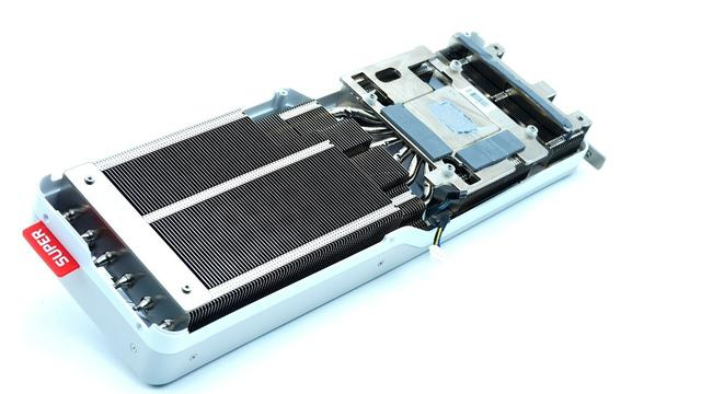 纯白色的金属背板,圆润的风孔设计与显卡气质如出一辙。背板反面还有激凸点设计,可以辅助显卡散热。