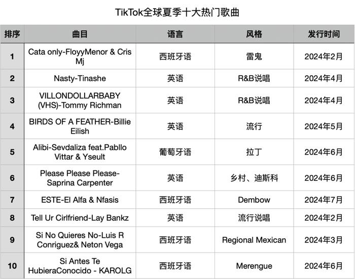 从上榜歌曲来看,葡萄牙语和西班牙语等小语种歌曲占据了榜单前10的5个席位,凸显了音乐的全球本地化特征。
