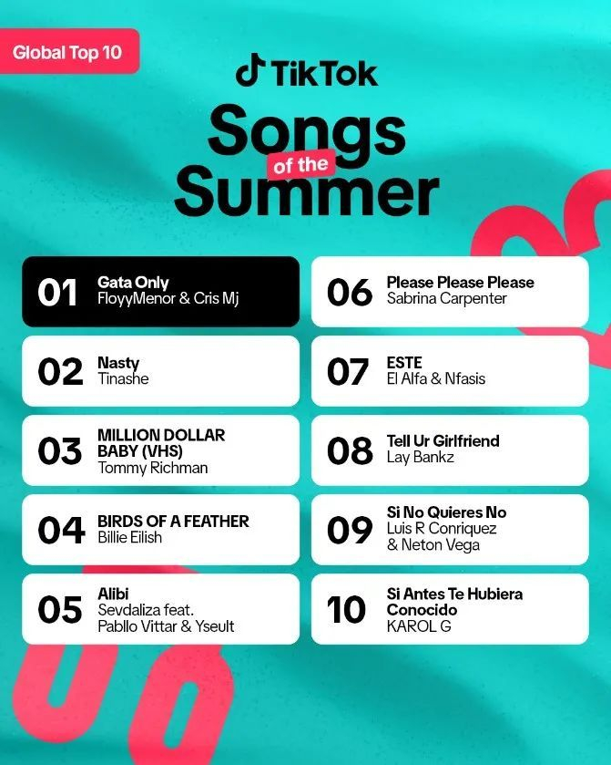 上周,TikTok揭晓了全球夏季十大热门歌曲榜单(以下简称榜单),榜单上的歌曲排名是基于2024年夏季期间TikTok视频的总创作量。值得注意的是,超过60%的上榜歌曲都为独立发行,而非来自签约三大唱片的签约艺人。