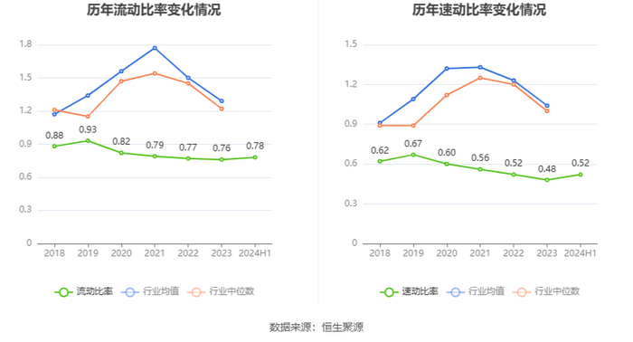 2024年上半年,公司流动比率为0.78,速动比率为0.52。