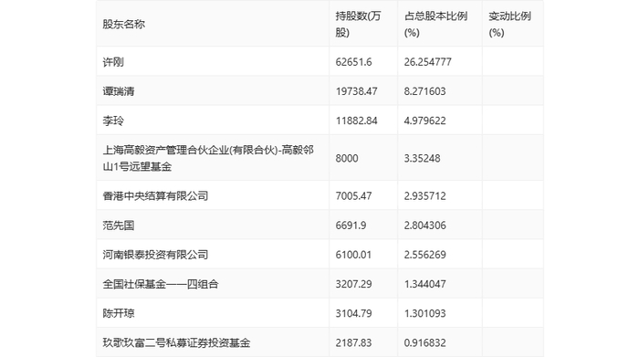 半年报显示,2024年上半年末公司十大流通股东中,新进股东为全国社保基金一一四组合、玖歌玖富二号私募证券投资基金,取代了一季度末的中国人寿保险股份有限公司-传统-普通保险产品-005L-CT001沪、龙佰集团股份有限公司-第二期员工持股计划。在具体持股比例上,香港中央结算有限公司持股有所上升。